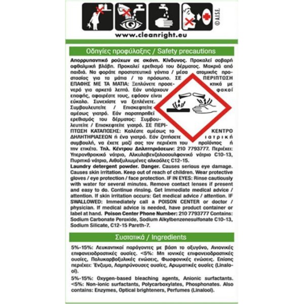 - Προσφέρει αστραφτερά λευκά και χρωματιστά ρούχα χωρίς λεκέδες.