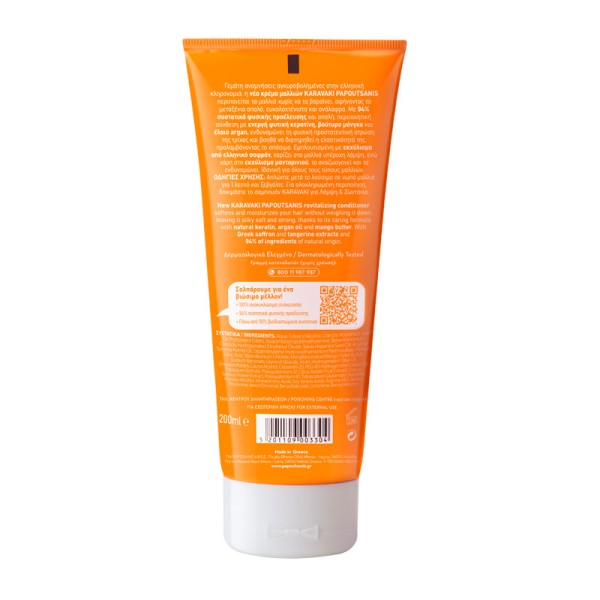- Εμπλουτισμένη με εκχύλισμα από ελληνικό σαφράν, χαρίζει στα μαλλιά υπέροχη λάμψη, ενώ χάρη στο εκχύλισμα μανταρινιού, τα αναζωογονεί και τα ενδυναμώνει.