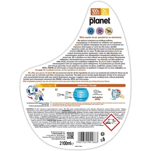 PLANET Orange Power Υγρό Απορρυπαντικό Ρούχων 28Μεζούρες