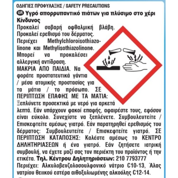 - Υγρό απορρυπαντικό για πιάτα και μαγειρικά σκεύη εμπλουτισμένο με εκχυλίσματα χαμομηλιού και βεταϊνες .
