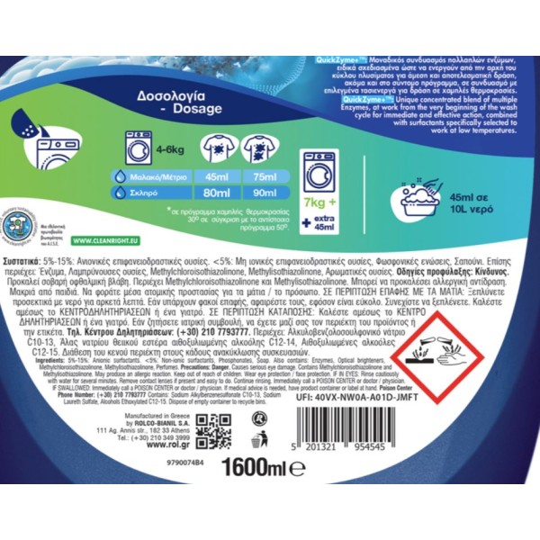ROL Quickwash Υγρό Απορρυπαντικό Ρούχων 1.6Lit