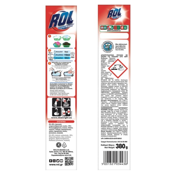 ROL Σκόνη Απορρυπαντικό Ρούχων Πλύσιμο Στο Χέρι 380γρ