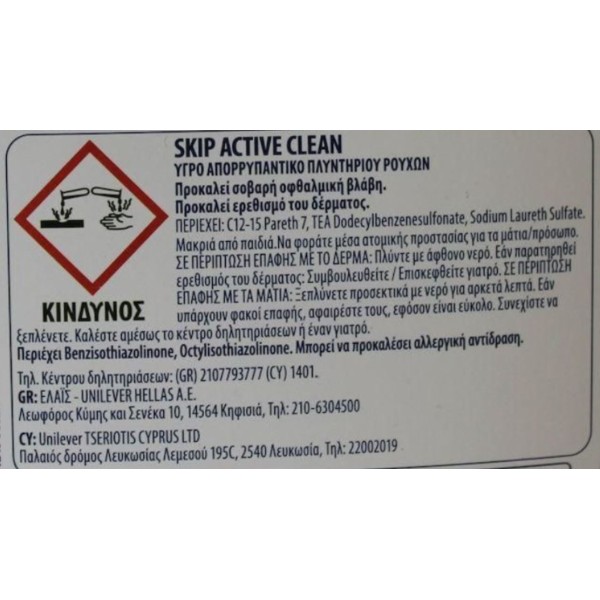 SKIP Active Clean Υγρό Απορρυπαντικό Ρούχων 85Μεζούρες